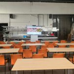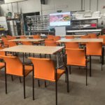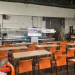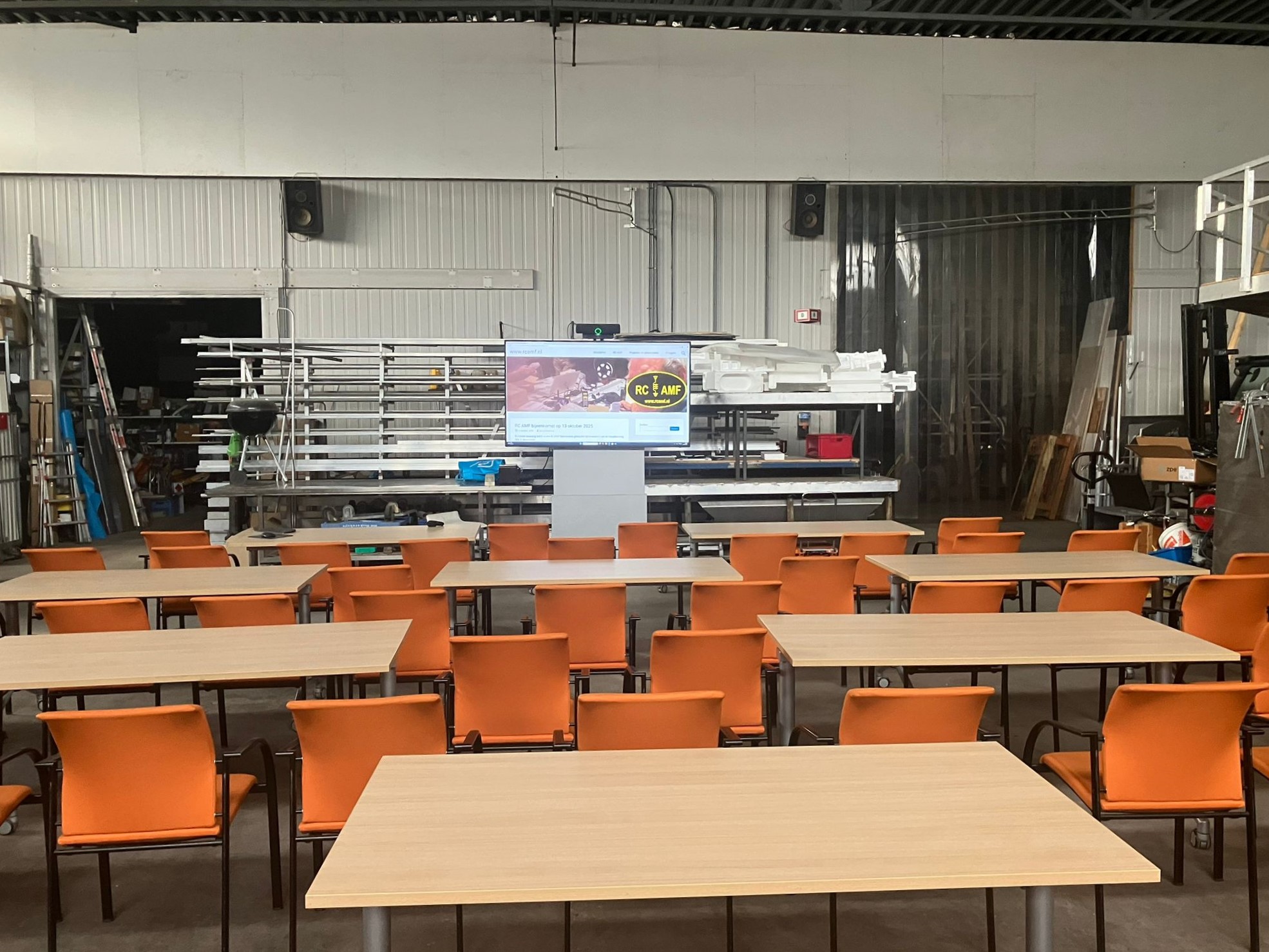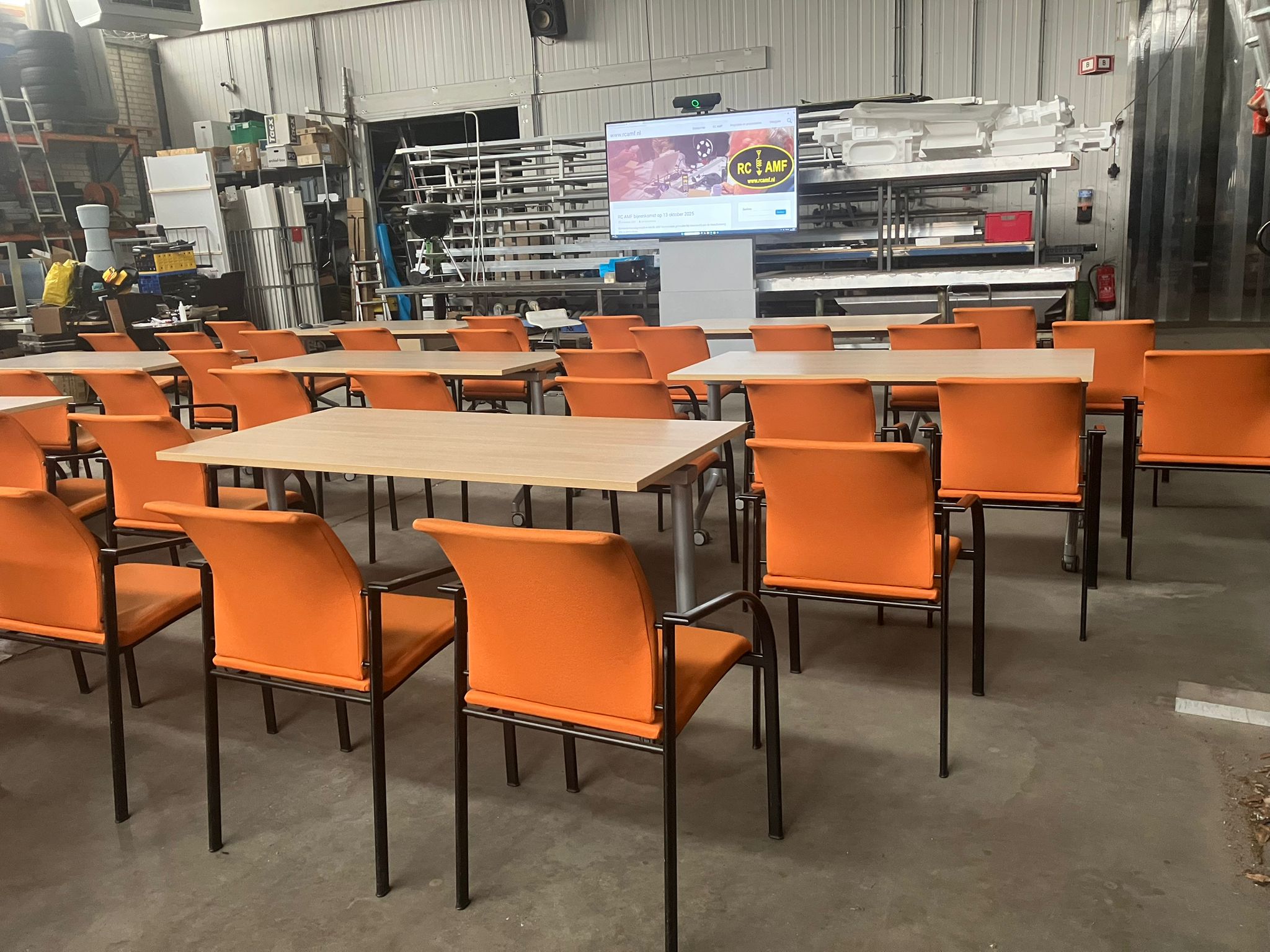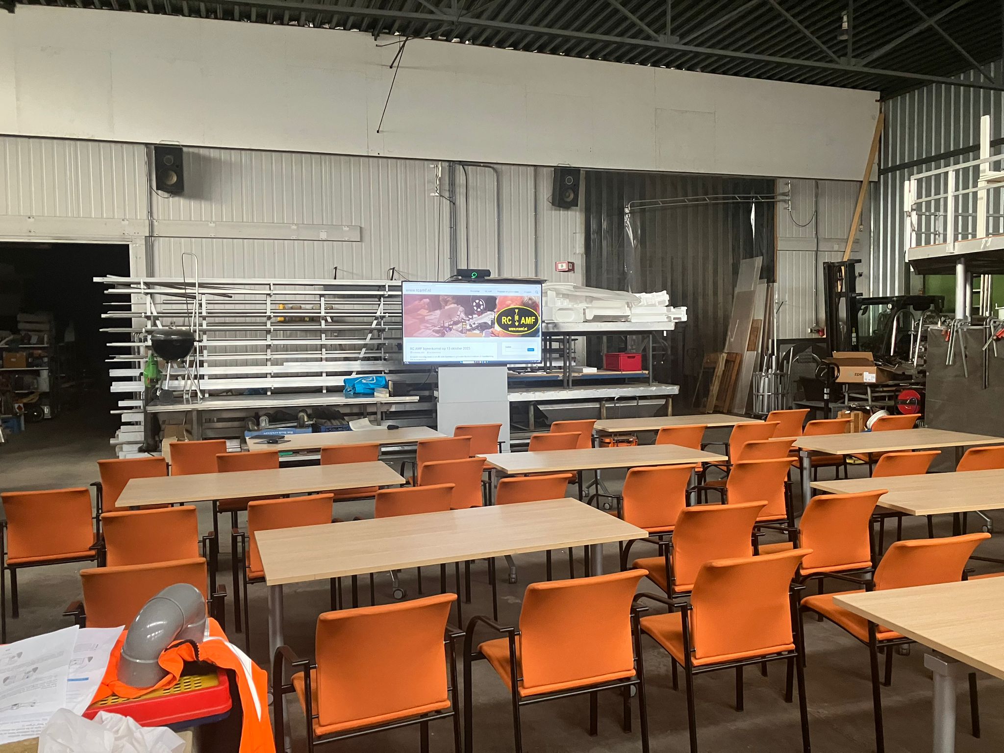 Zo rond 16:00 werd de ruimte geschikt gemaakt voor de lezing die voor vanavond op het programma stond. Dus werden de tafels en stoelen weer aangepast neergezet.
