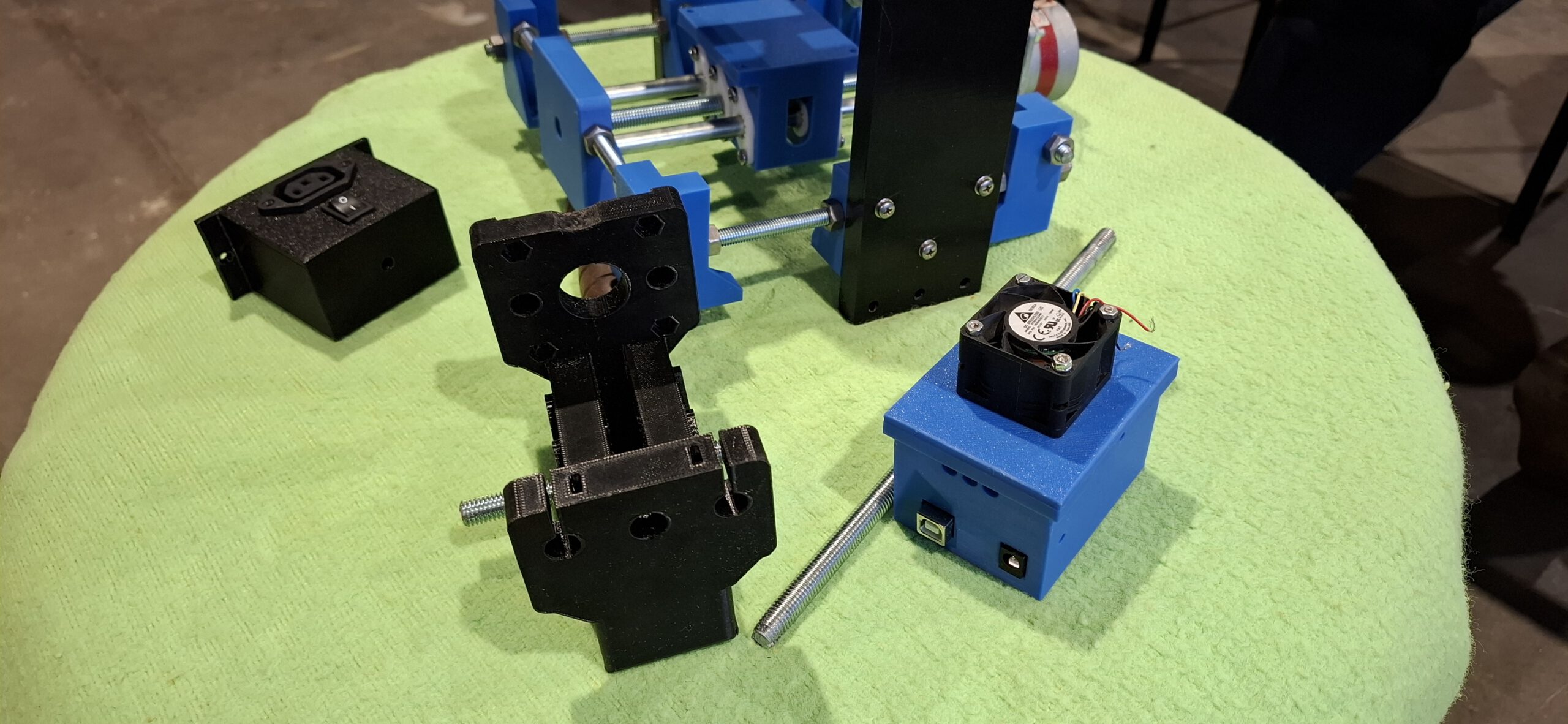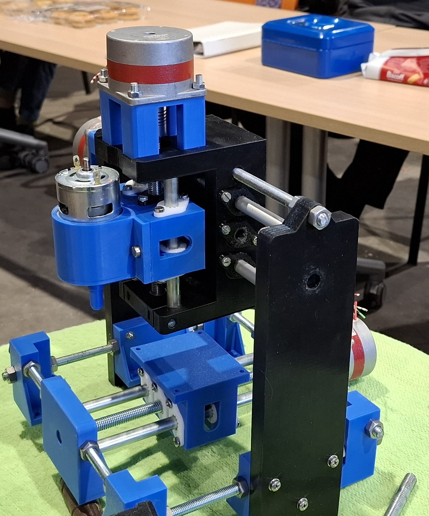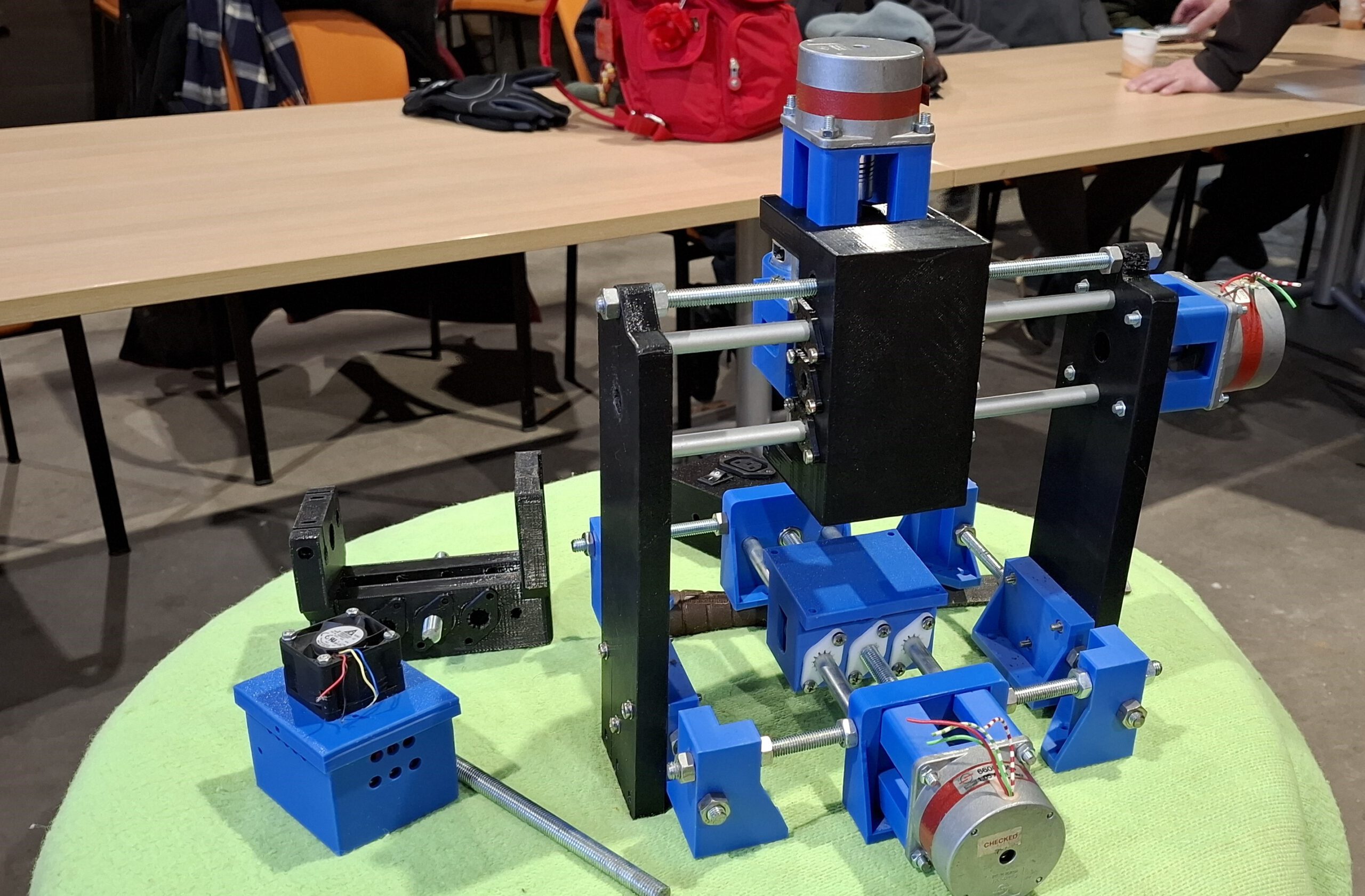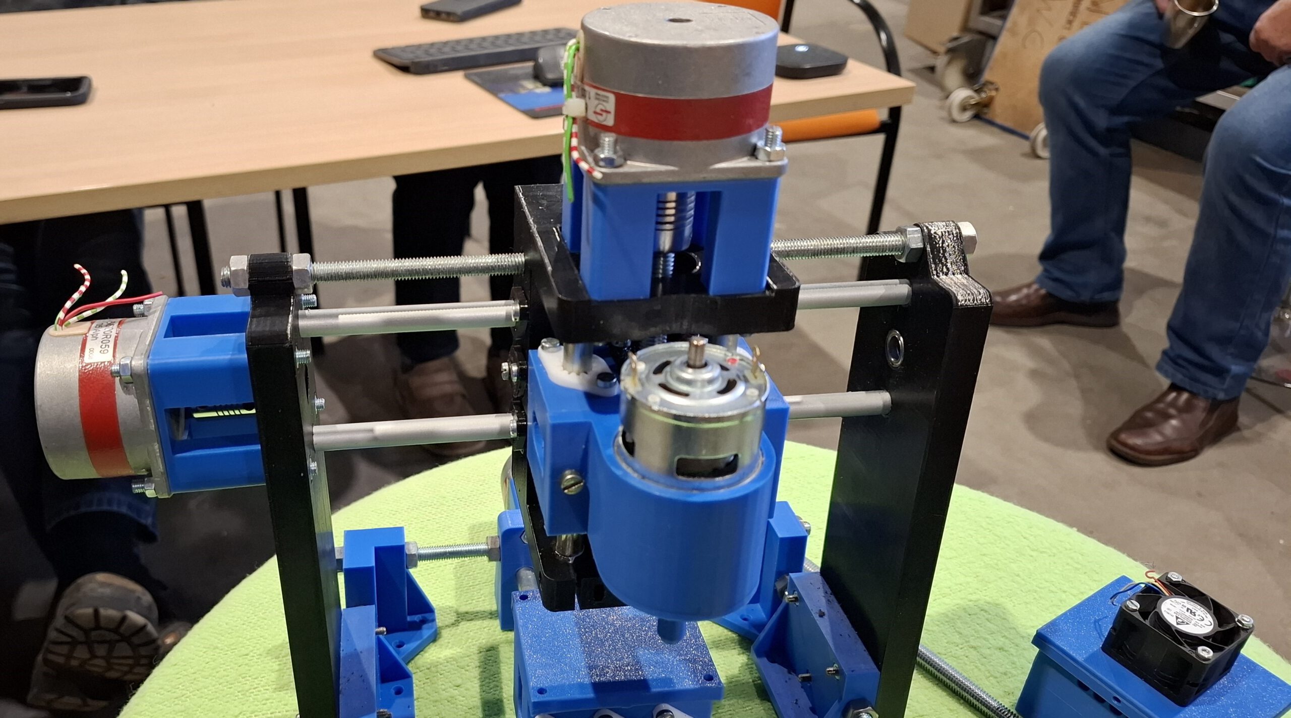 Op een tafeltje had hij zijn bouwproject uitgestald: het begin van een 3-assige CNC-bank.