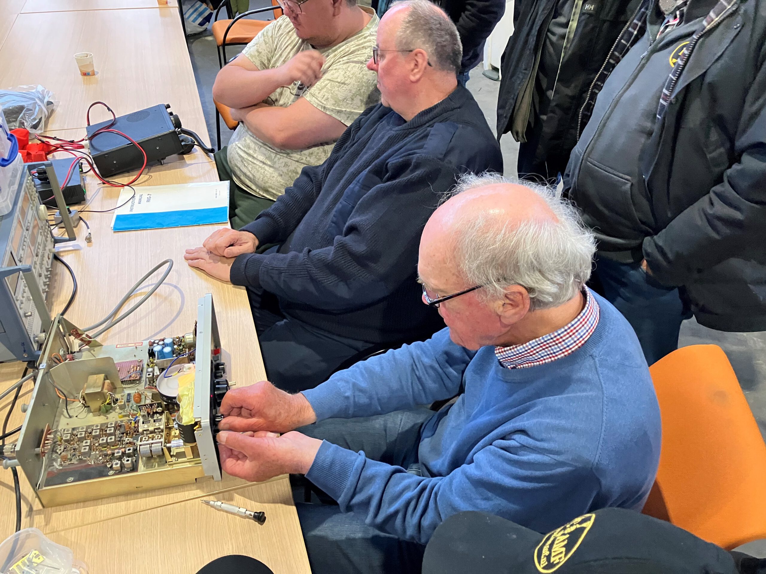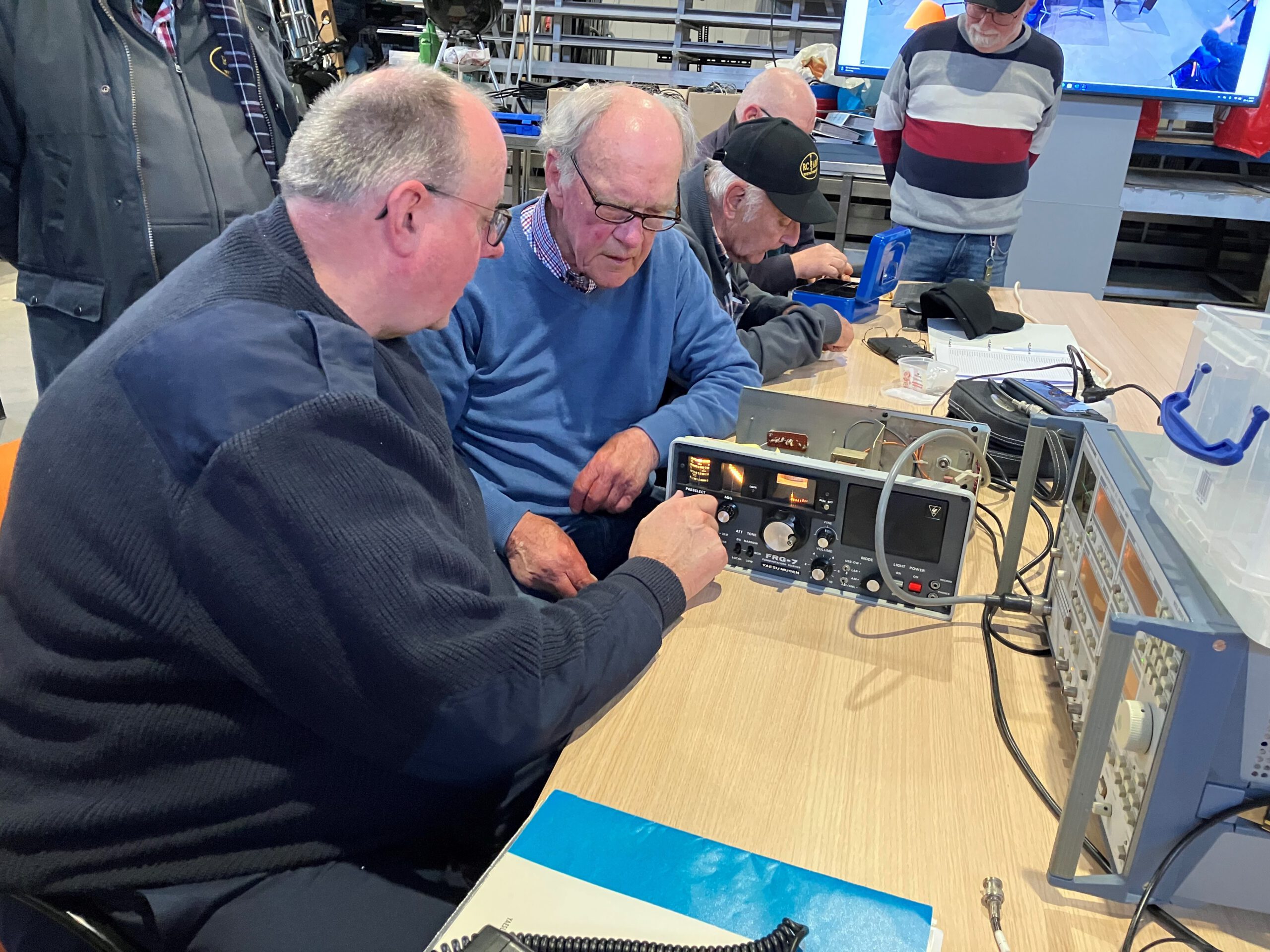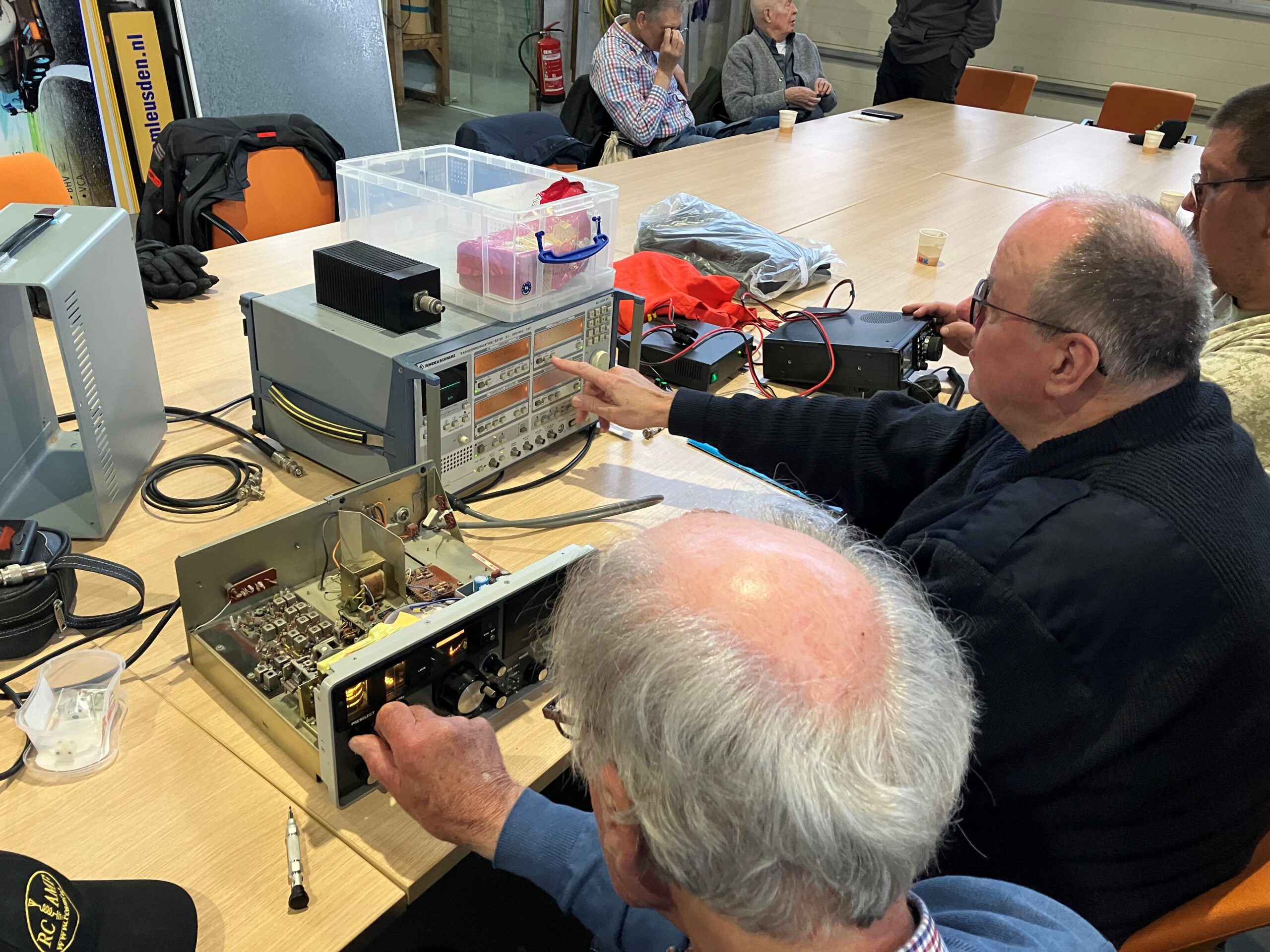 Rond 18.15 uur kwamen Adriaan (PA1LIO) en Jaap (PD5ISW) binnen, kort daarna gevolgd door Erik (PE1RQF), die direct de meetapparatuur controleerde. Daarmee was alles gereed voor de metingen.