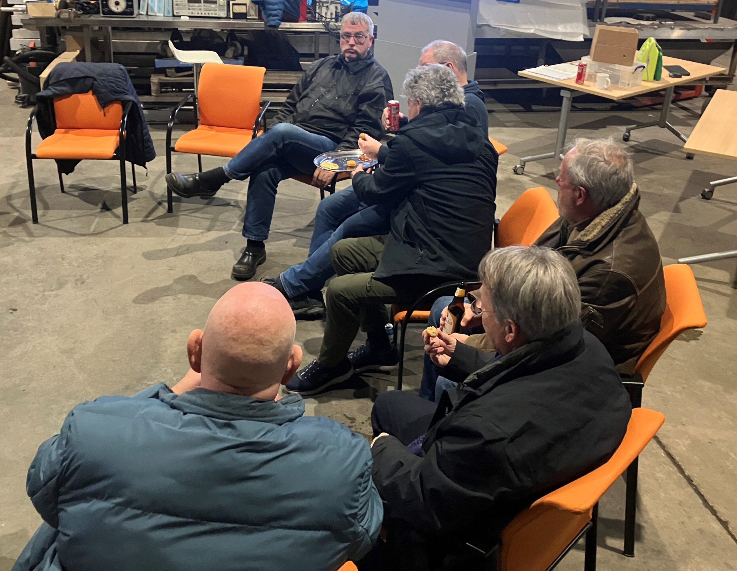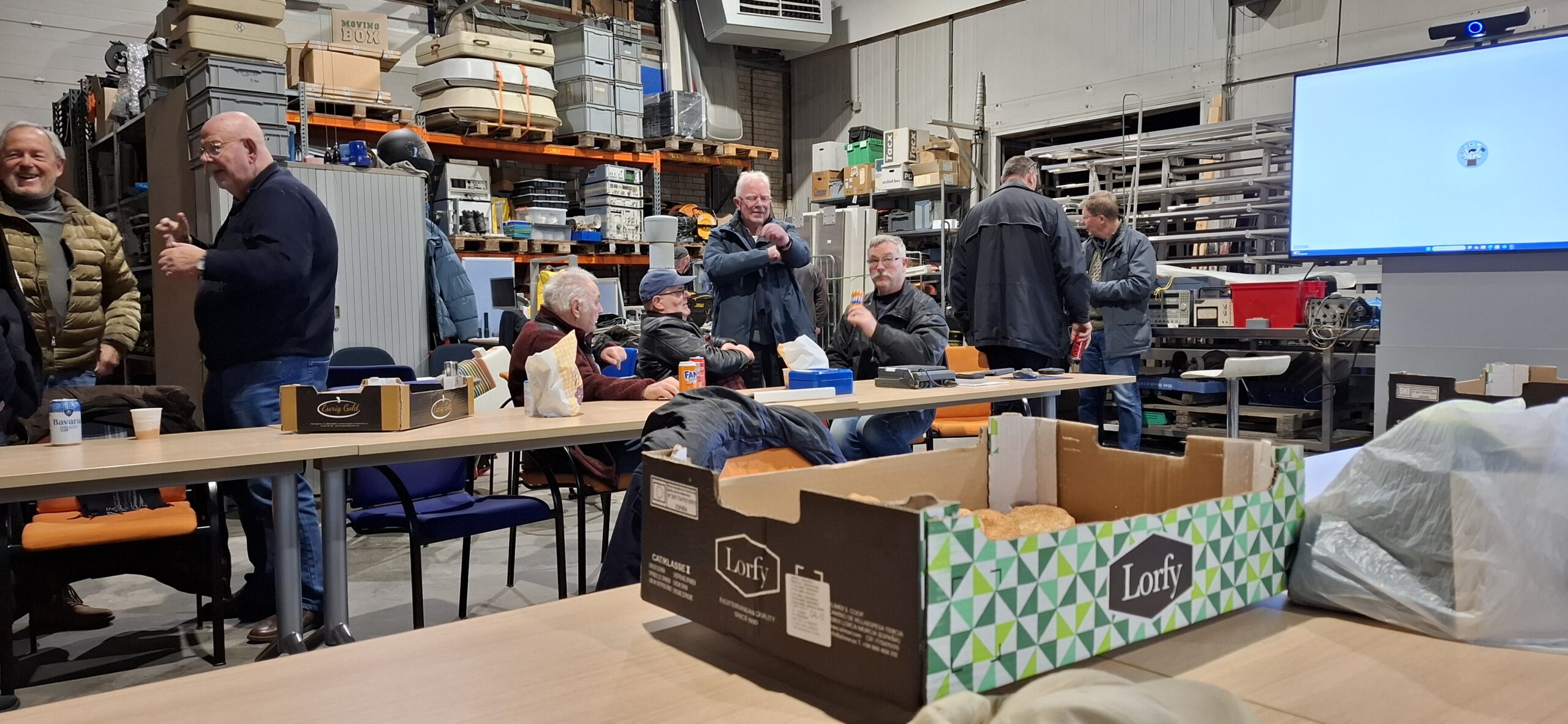 Voor mij stond er die dag nog een klus in Utrecht op de agenda, waar ik om 09:00 uur aanwezig moest zijn. Daarna ging ik door naar de loods, waar ik pas rond 16:00 uur weer aankwam. Onderweg belde Henk (PA0JMD) dat hij al bij de loods was, met het lekkers voor de bijeenkomst. Weer bedankt voor het regelen, Henk. Op afstand heb ik de deur voor hem geopend, zodat hij alvast naar binnen kon.