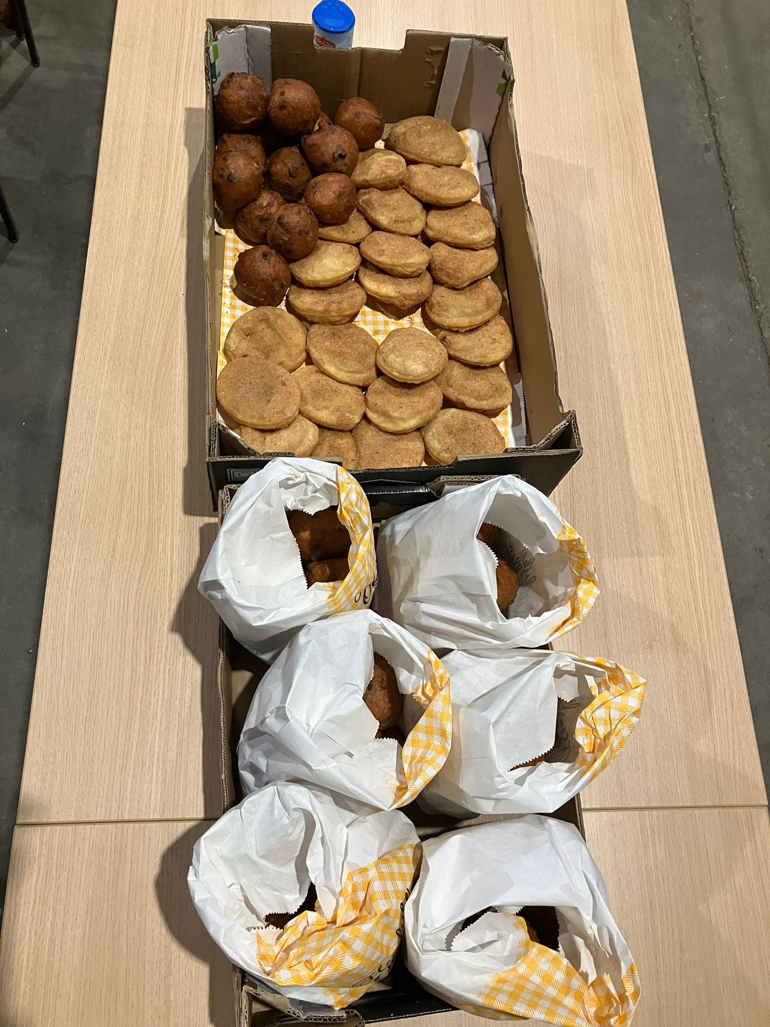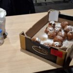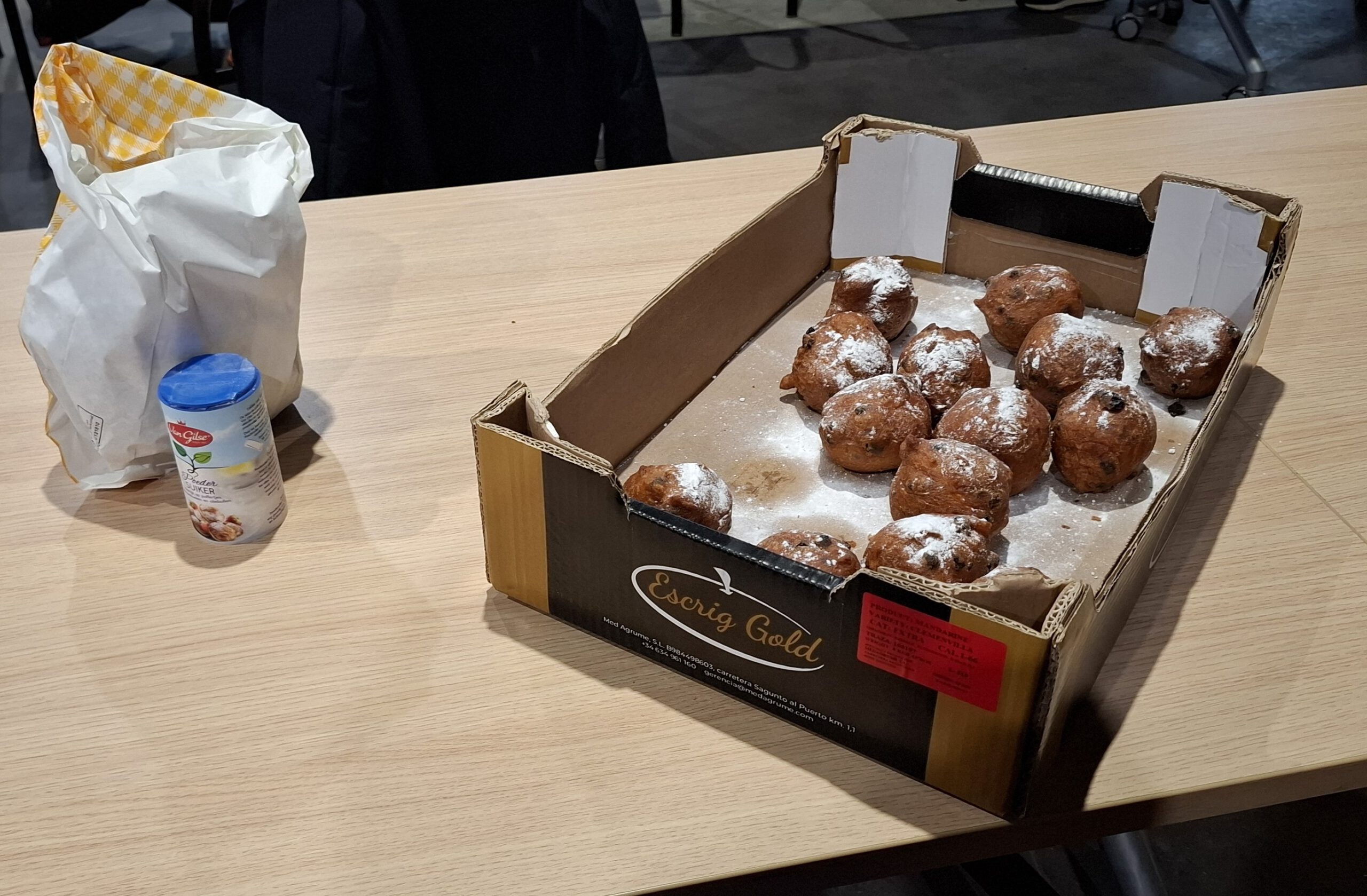 De oliebollen en appelflappen werden op tafel gezet en zo waren we klaar voor de bijeenkomst.