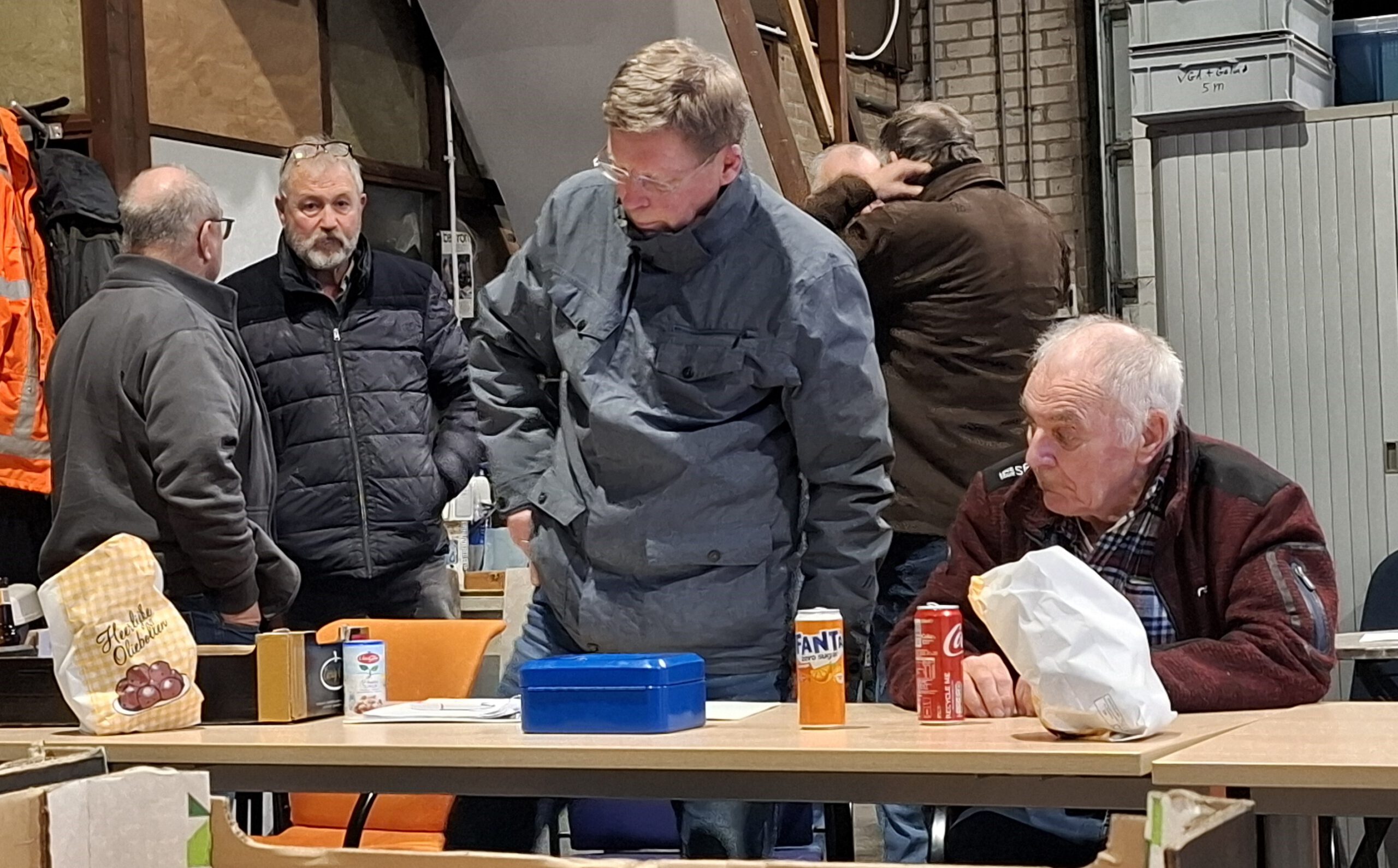Omdat Jaap de week ervoor al wat lekkers had meegenomen, was het aangenaam stil in de loods en kon ik rustig enkele mededelingen doen.