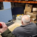 Simon ging aan de slag met zijn Condor-5000 op de 4-meterband, waaraan hij enkele wijzigingen wilde aanbrengen. Helaas bleek niet alle benodigde software op de DOS-pc aanwezig te zijn, dus dat krijgt nog een vervolg. Bij het verder bekijken van de pc bleek dat er nog veel meer software op stond en dat een aantal bezoekers verrassend goed met zo’n antieke computer overweg kon.
