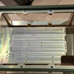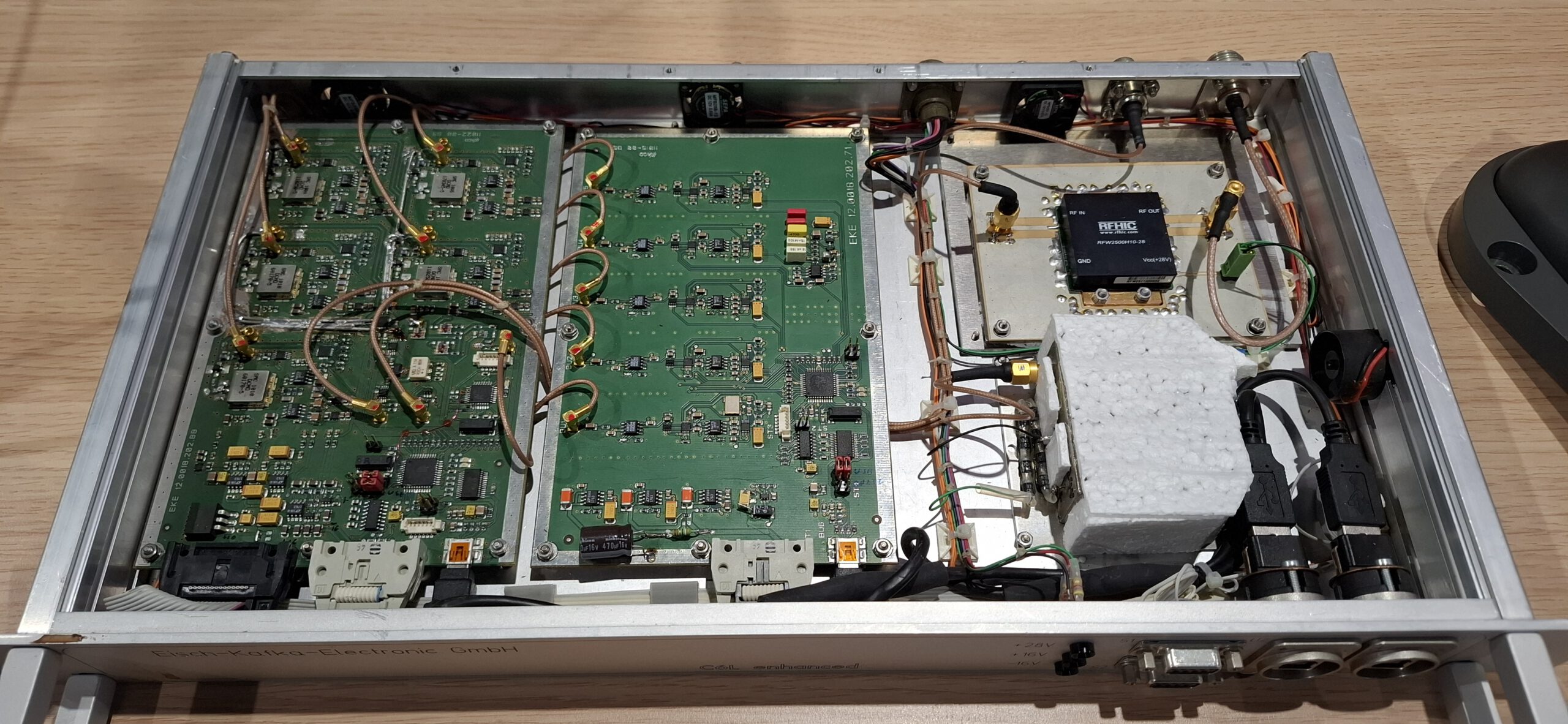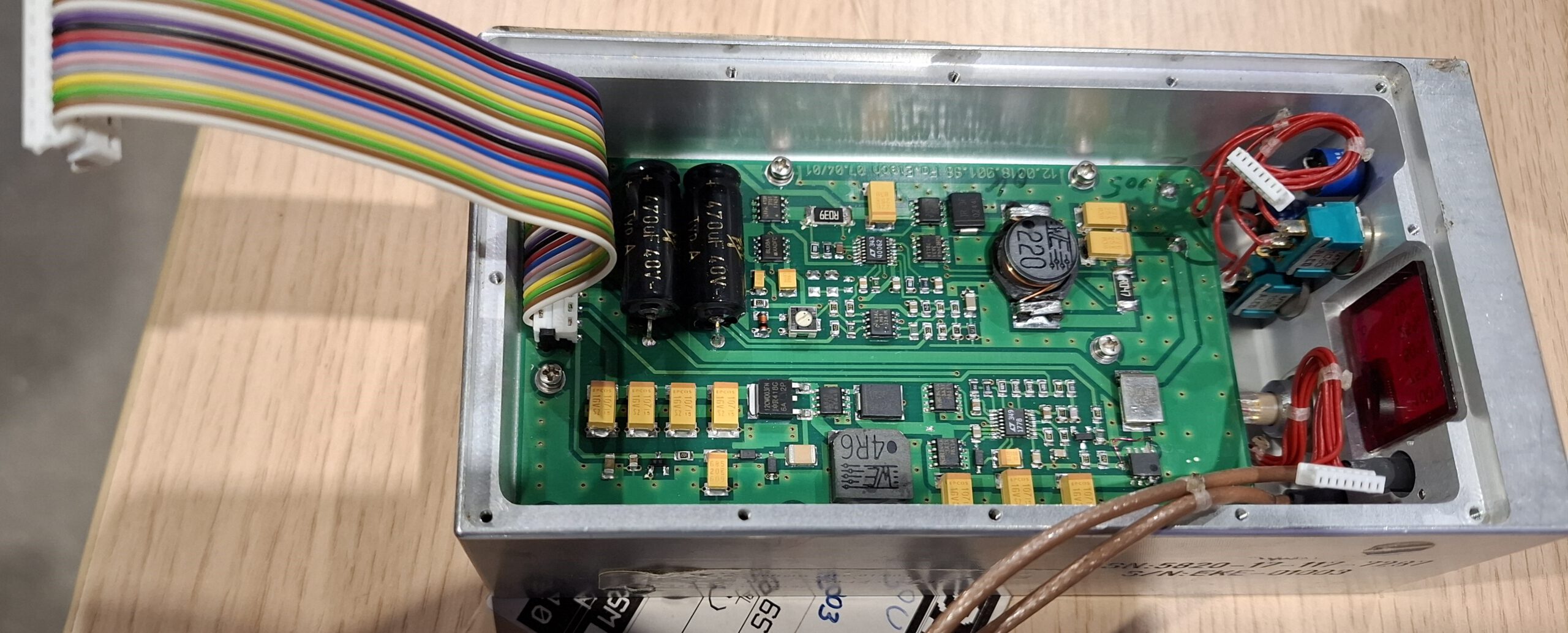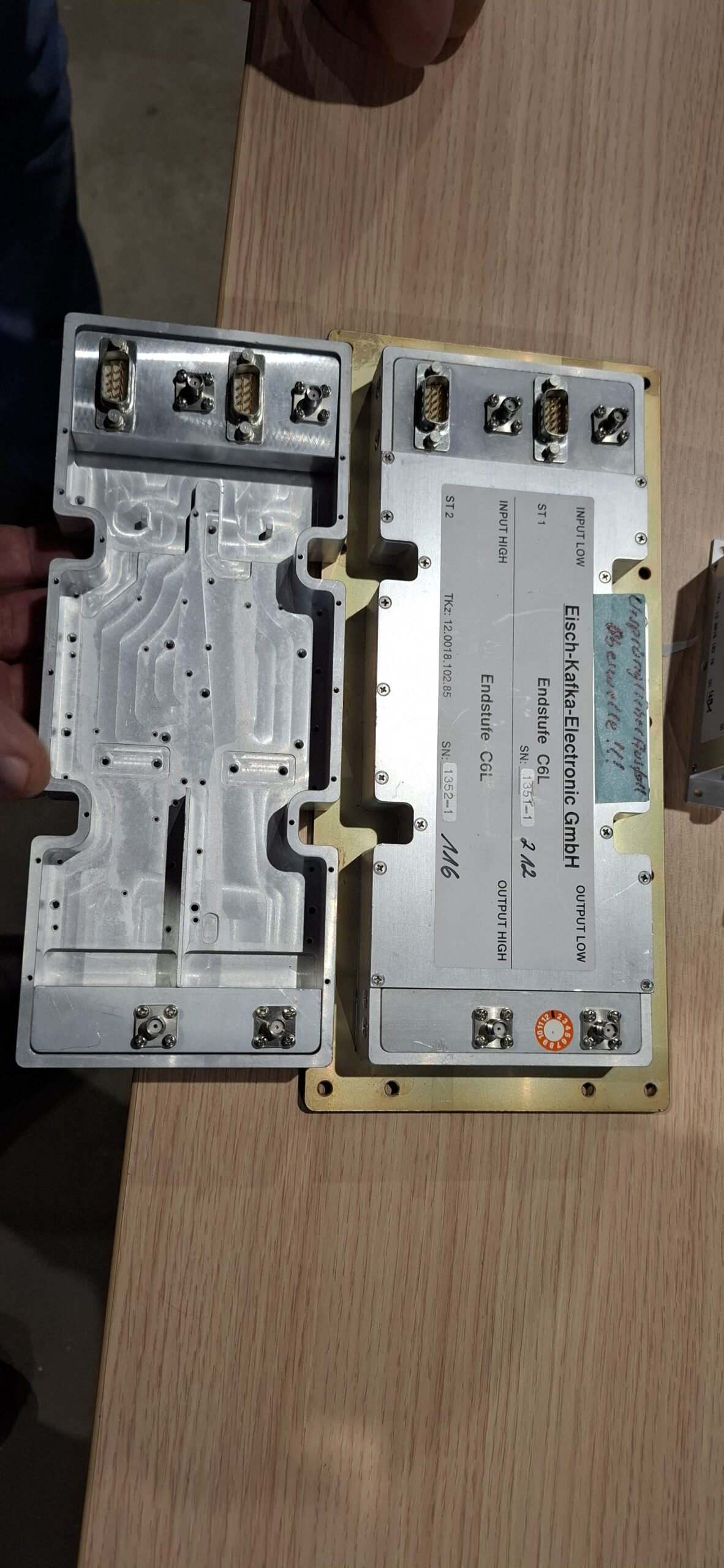 Verder werd er door Jan een beetje ingegaan op de techniek. Het geheel werd ondergebracht in een uit één stuk gefreesde kast aluminium, wat voor de bewerking een blok aluminium van 17 kilo was.