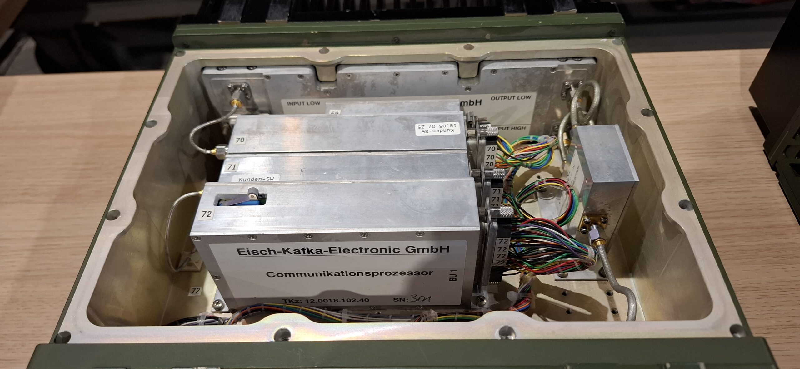 Edwin had nog iets moois weten te bemachtigen voor het compleet maken van zijn collectie Telefunken-radiomateriaal dat bij het Ministerie van Defensie in gebruik was van 1980 tot 2004. Het ging om een door Racal geproduceerde RACAL COMSEC MA-4450: een Data Berichten Apparaat (DBA) dat versleutelde berichten in burst-mode kon verzenden. Hiermee is de SE6861-familie in zijn collectie nu helemaal compleet. Over dit apparaat is nog het nodige te vinden; zo werd het speciaal gebruikt bij de 104 Verkenningstroepen onder de naam LAPAR (Lange Patrouille Radio).