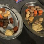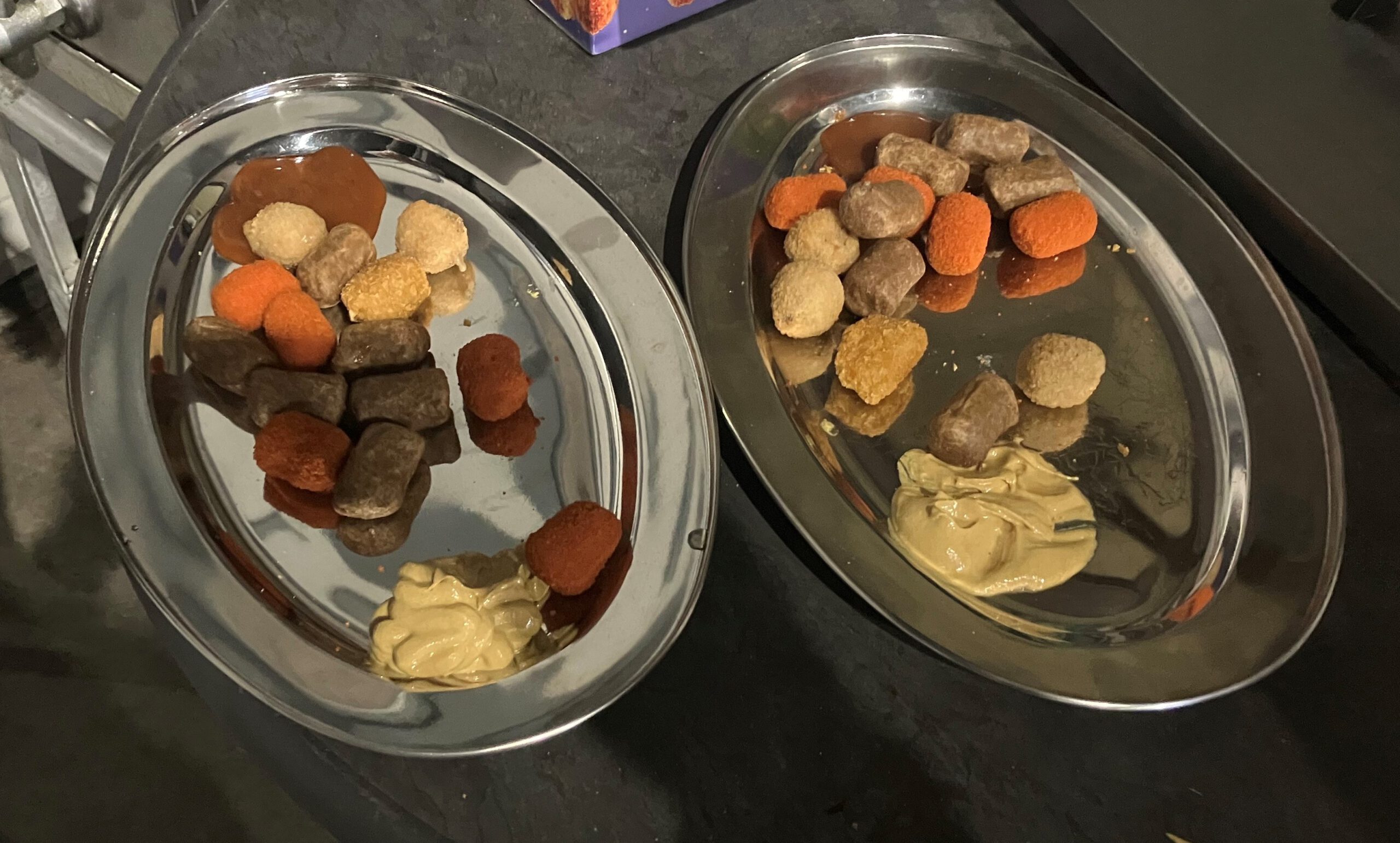 Ook vroeg de presentatie-PC om een Windows-update, dus dat werd ook nog even geregeld. Aangezien ik onlangs weer een jaartje ouder was geworden, had ik wat lekkers meegenomen. Dit keer geen zoetigheid, maar iets hartigs: vis (paling) en stukjes worst. Alles had ik netjes gesneden en op een paar schalen gelegd, zodat we het straks gemakkelijk op de tafels konden zetten.
