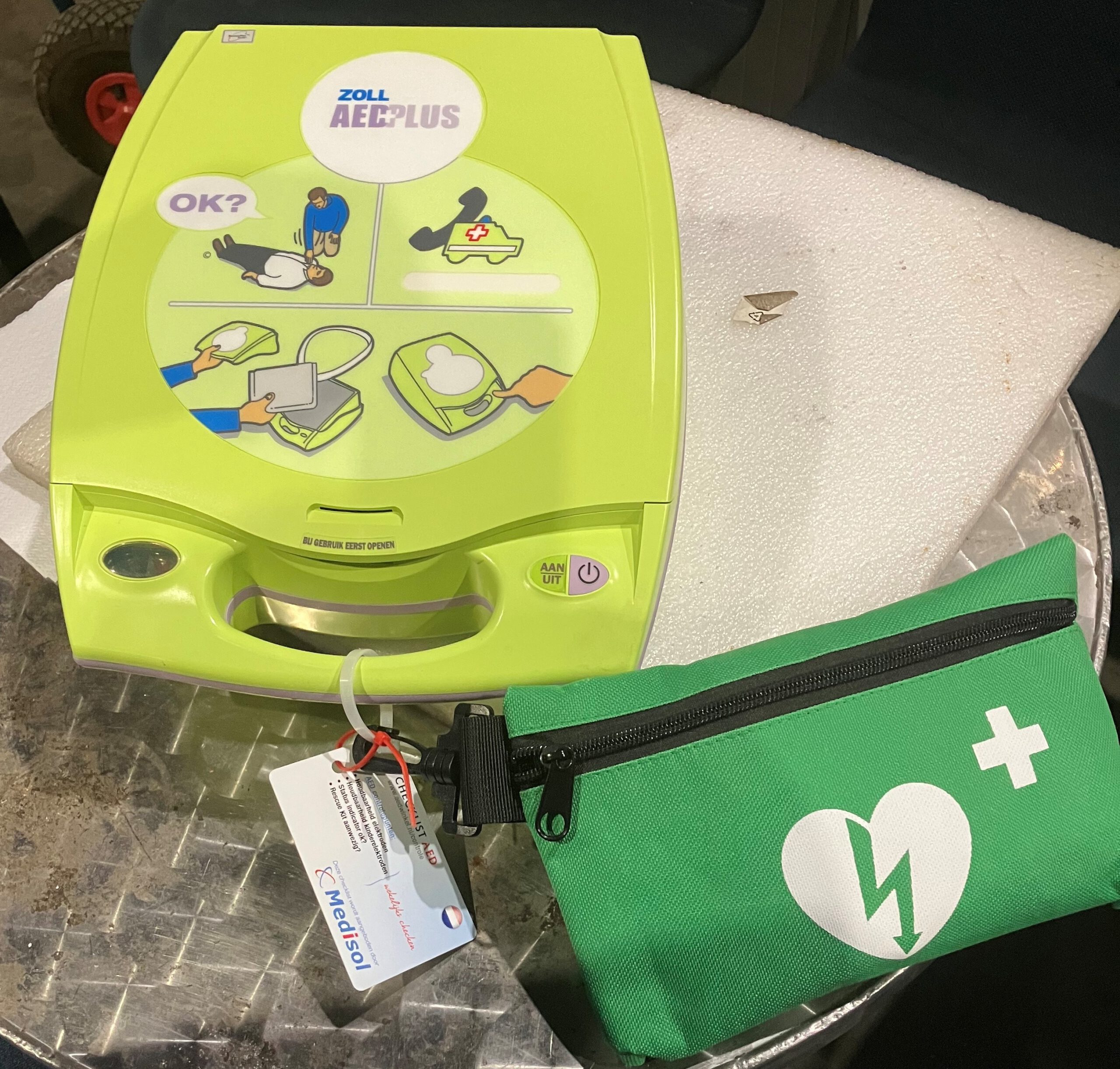 Aangezien er inmiddels ook een AED in de loods aanwezig is, bestaat het plan om hiervoor een opleiding te organiseren. Daarbij bleek echter al snel dat een AED-training alleen niet voldoende is. Jan en ik hebben daarom onderzoek gedaan en het zal een gecombineerde Reanimatie- en AED-training moeten worden. Hier wordt momenteel aan gewerkt en, als alles goed verloopt, is daar inmiddels een passende oplossing voor gevonden.