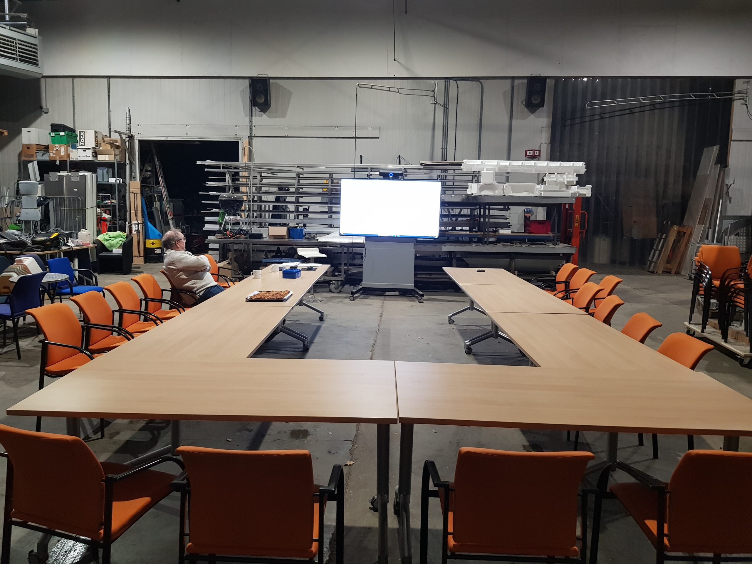 Gisteravond was ik net voor zes uur bij de loods. Ik kwam dit keer alleen, omdat Adriaan (PA1LIO) zich bij mij had ziekgemeld — beterschap Adriaan! Terwijl ik de lampen aandeed, kwam ook Jan (PD0HGQ) binnen. Samen hebben we de tafels, stoelen en overige spullen klaargezet voor de bijeenkomst.