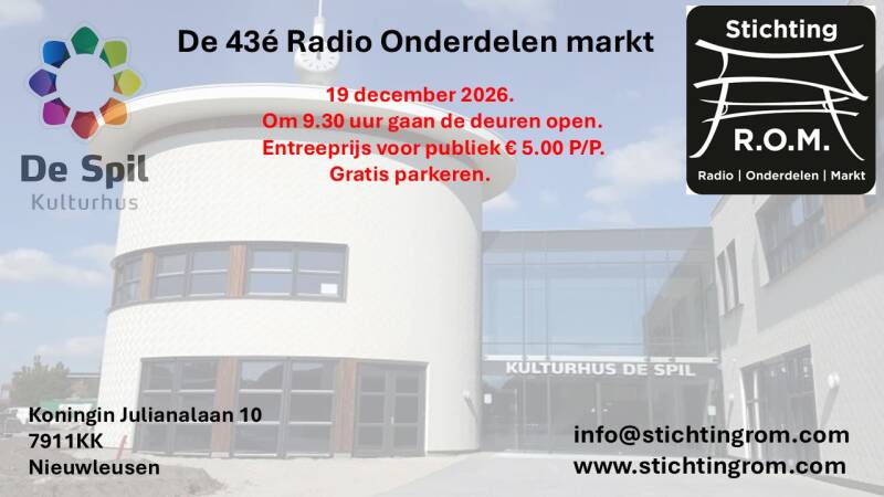 19 december 2026 is er voor de 43e keer de Radio Onderdelen Markt ( R.O.M.) Deze markt gaat plaats vinden aan Koningin Julianalaan 10, 7911 KK Nieuwleusen Parkeren is gratis […]